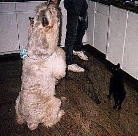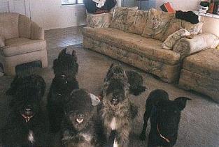 Dogs I have loved .... Dogs I have lost "Big Boo", Bouvier extraordinaire! He wasn't my dog, but he was my dog in my heart. He was a large fawn with a heart as big as my house. He spent a lot of time with me and was everything a Bouvier should be. I could take him anywhere and he would lay quietly at my side. If someone tried to touch my car or hurt me in any way, he would turn into 95 lbs. of teeth in about 3 seconds. Someone once tried to climb a fence at my house in the city. He was repelled by a flying bundle of teeth who had been sleeping just seconds earlier. I would walk him in the city and every child in the neighborhood who knew him would come running out to give him a hug, squealing his name in delight, "BooBoo, BooBoo!". He would stand patiently, allowing hugs, kisses and being a generally all around sweetheart. I took him to parties where more than 50 people were in attendance -- he would quietly lay by my side, observing the festivities. He was adorable with other dogs, unless challenged. He was my friend, my protector, my heart. BooBoo came to stay with me while his daughter was in season. He had slept on my bed the previous night. He was out running with his children and grandchildren when he suddenly collapsed. He waited for me to hold his head and then the light went out of his eyes. BooBoo is the reason that I bought my first Bouvier, one of his sons, Bear. Retro, my little "whippilab", my first dog as an adult. I found her running the streets of Sylmar when she was about 6 weeks of age. She ruled the roost and was the queen of all who followed. I remember her introduction to Bear when I brought him home. She thought he was great, until she realized he was staying, after which she firmly taught him who was the boss. They went on to be best friends for the rest of her life. She dominated all the other Bouviers who followed and they were all very respectful and terrified of her until the day she died, despite the fact she weighed about 30 lbs. Retro slept on the bed and was my constant companion until I lost her to lymphoma, when she was only 8. Cowboy, one of my first Bouviers, nicknamed "Goofy Maloofy" because of his silliness. He loved ice cream and would sit at my feet, waiting for his spoonful and his chance to get to lick the bowl clean. I first saw him when he was a few days of age. He had a little stumpy that never stopped wiggling. He was diagnosed to have autoimmune hemolytic anemia when he was 8. Despite wonderful vet care, including a blood transfusion, he succumbed to the disease the day after Thanksgiving in 2005. He came into my office and breathed his last breath laying beside me. Lehua, a girl who was dropped off at my gate as a matted, nasty mess. She had a forceful personality and wasn't very social, having been a backyard dog. Over the next few months, I learned her hot buttons were squeaky balls. We played a game -- I will throw the ball, but you have to let me touch you before I throw it again. Slowly, over a period of 8 months, she came to trust me. Finally, she became gentle enough to allow a grooming -- a naked do! She was so proud of finally being a pretty girl, she pranced for hours. She was finally brought into the house and became a member of my crew. My friend, Margret, found her a forever home. I had saved a special ball, which she had been eyeing for weeks, which she was given as she left my house in a van. I cried my eyes out. She looked at me like, what did I do wrong? Nothing, but she had a perfect home waiting, where she was the only dog for a wonderful man, which was going to be a better life for her than being just one of a large crew. Her new owner who was mortally injured in an accident only a few months later when he had been riding his bicycle with Lehua on a leash. Margret saw her being brought into AC, recognized her and took her back immediately. Over the next few months, while her owner lay dying, she was frequently taken to the hospital to visit him. He didn't make it and she was placed in another great home; however, she showed her propensity for jumping over 6 foot fences to go and kill the neighbor's cats. Margret again got her back and this time, had also fallen in love with her and kept her. She went on to earn a therapy dog certification and became a beloved pet. She died laying next to Margret on her couch at the age of 15. We both cried when she was gone. Buster, a son of BooBoo's who looked so much like his grandfather, Donald, that Norma cried when she first saw him. Donald had been her boy, who lived to the age of 15. A terrific boy with lots of temperament and a dog who could open gates in an instant. He came to us when he was already 5. He died at the age of 12. He went for his morning constitutional, was given his breakfast and simply went to sleep without waking. Chantewa, one of the girls from De La Bai kennels. At the age of 6, she was diagnosed with cancer. My vet thought that she still had time, but the next morning, she was gone. Zues -- the wonderful boy who did EVERYTHING! Another BooBoo son. I successfully showed him to an AKC Championship, a Mexican Championship, he obtained a TT, he obtained a Therapy Dog International certification, he passed his NAWBA courage test at the age of 10 and he obtained a BH at the age of 10. He came to us when he was 5. He succumbed to an aggressive form of abdominal cancer when he was 11. He was also not owned by me, but I spent a lot of time with him and he lived in my house. Mimi, my Bonnie's sister, who I took in from her elderly owner when she had to move into an assisted living facility and she had to give up both of her pets. Mimi was dreadfully overweight (about double her normal body weight), but a loving, happy girl who got along well with my other house crew. She developed DCM (dilated cardiomyopathy) at the age of 9 and it took her. She was well loved by her owner and by me for all of the years of her life. Her pal, KC, Bear's brother, was also about double hi
